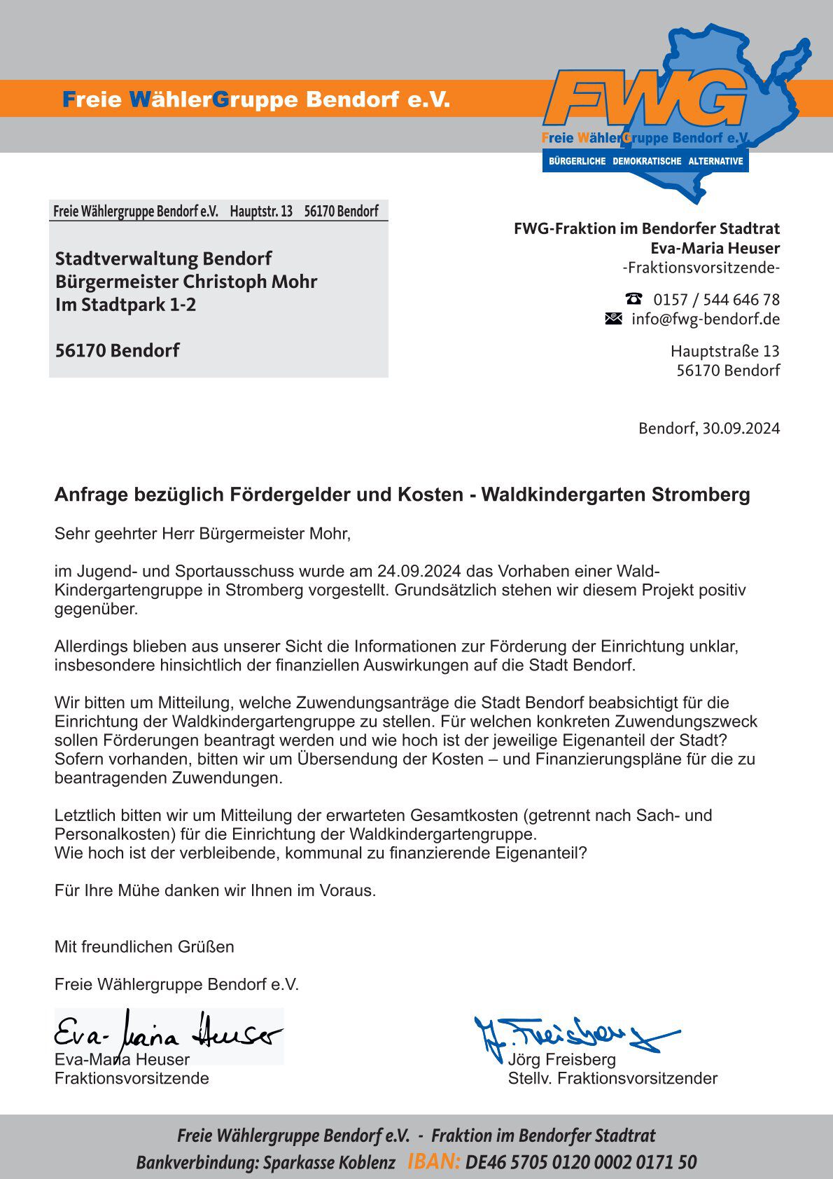 Anfrage bezüglich Fördergelder und Kosten - Waldkindergarten Stromberg