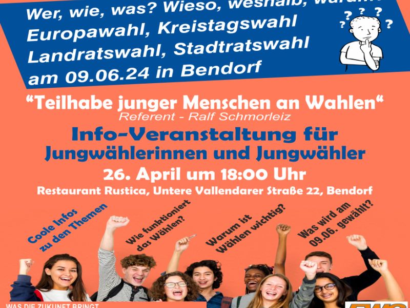 „Was die Zukunft bringt - Liegt auch an Euch“ - FWG Bendorf lädt alle Jungwählerinnen und Jungwähler am 26.04.2024 ein