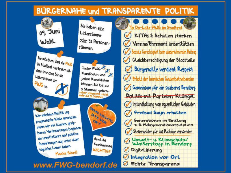Freie Wählergruppe Bendorf e.V. – Unsere „To Do-Liste“ für Bendorf