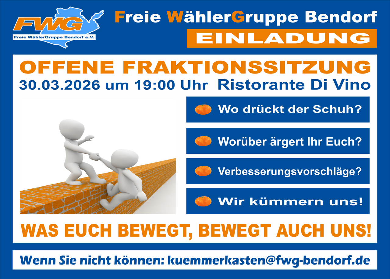 Einladung zur offenen Fraktionssitzung der FWG Bendorf am 30.03.2026